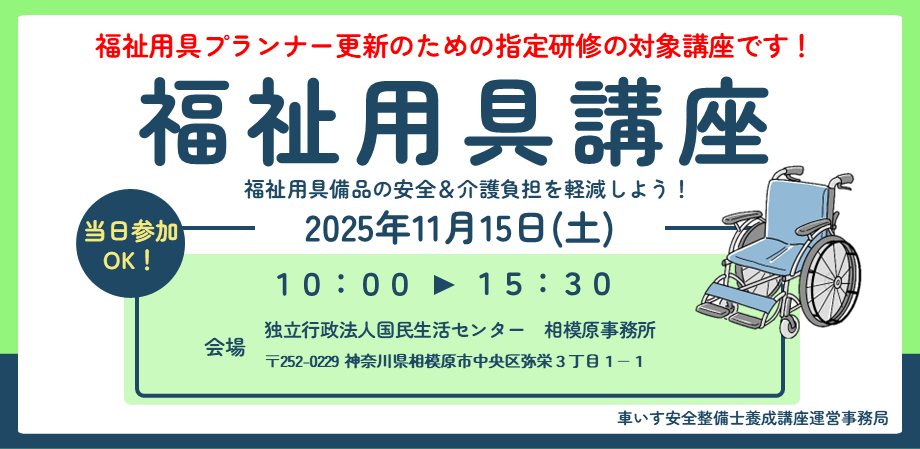 福祉用具を主とする鉱工業製品の安全・安心な利用促進のために、各種事業(試験評価・製品評価・福祉用具に関する各種研修開催及び講師派遣・執筆依頼対応など)を行っています。